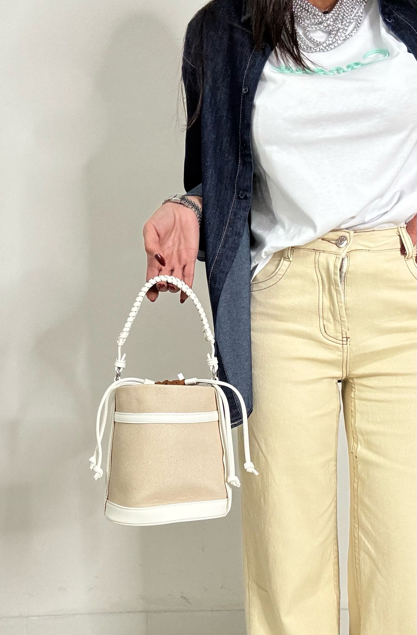 CHIUSURA A SACCO CON LACCETTI IN SIMILPELLE