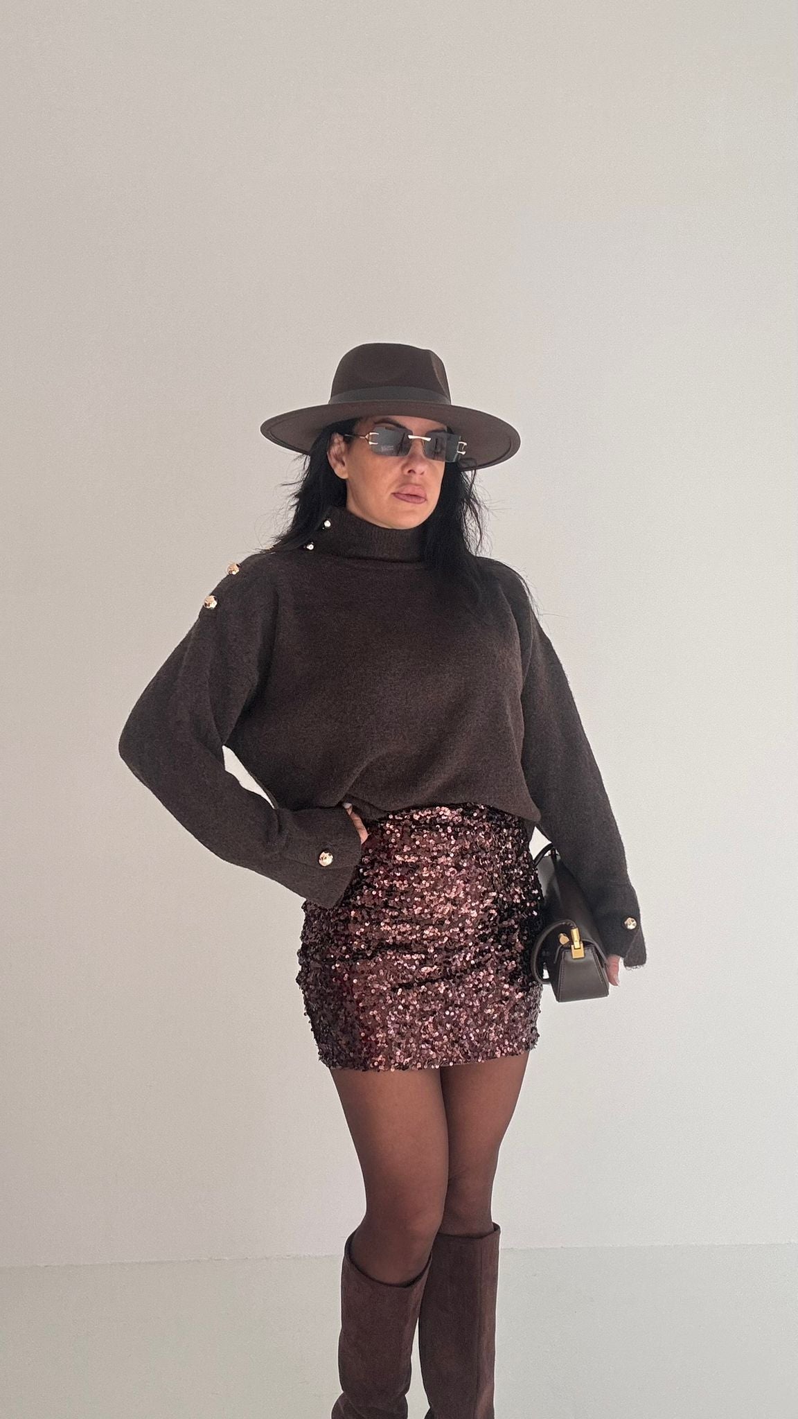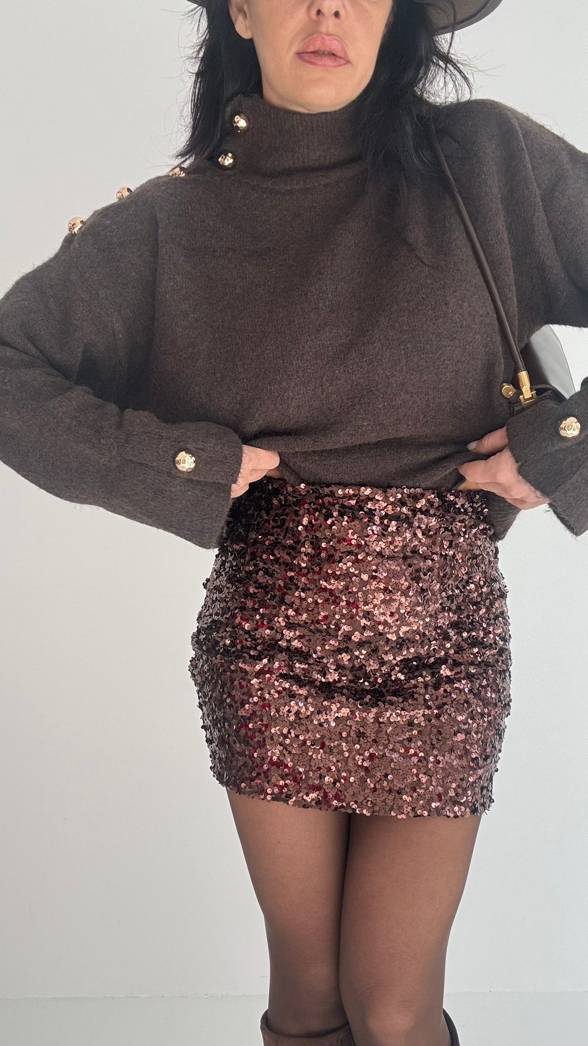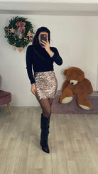 minigonna pailletes elastica, senza chiusura