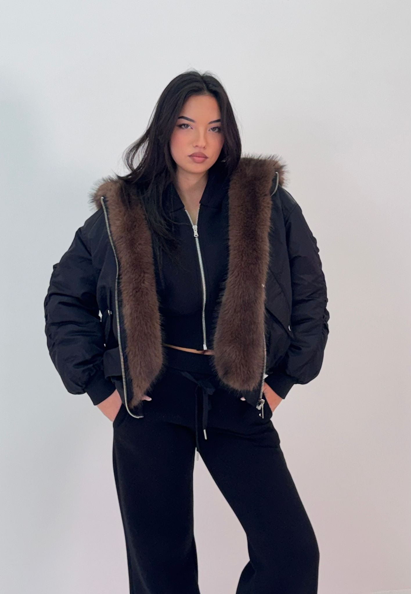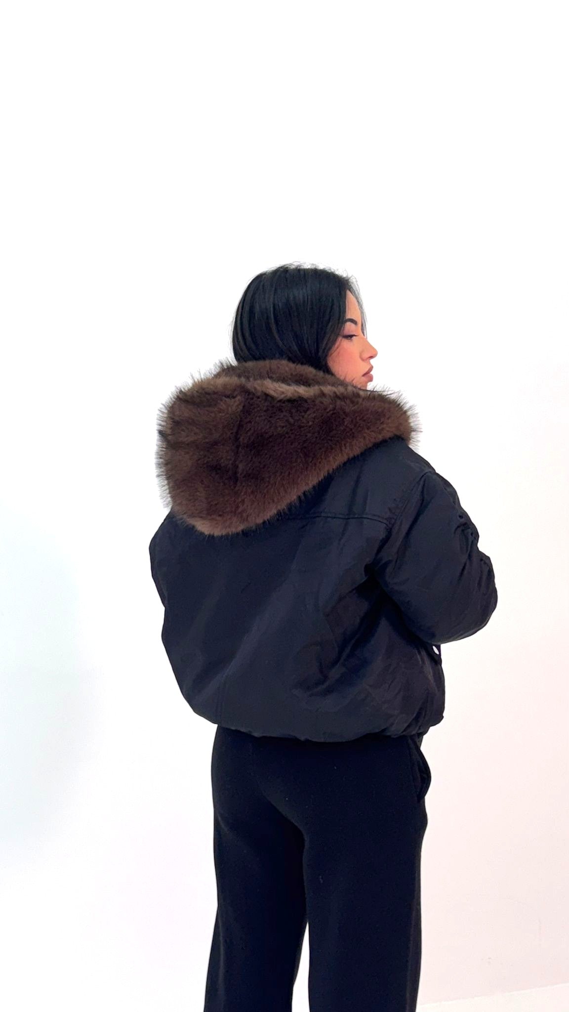con cappuccio in ecopelliccia