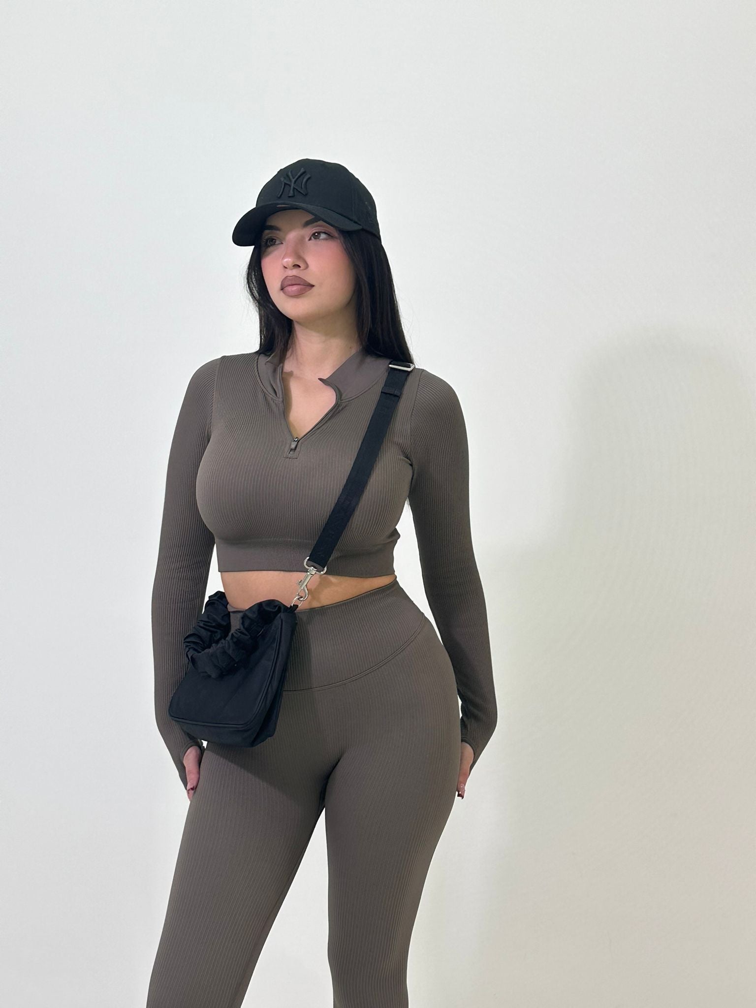 MAGLIA CROP CON MEZZA ZIP E MANICA AGUANTO