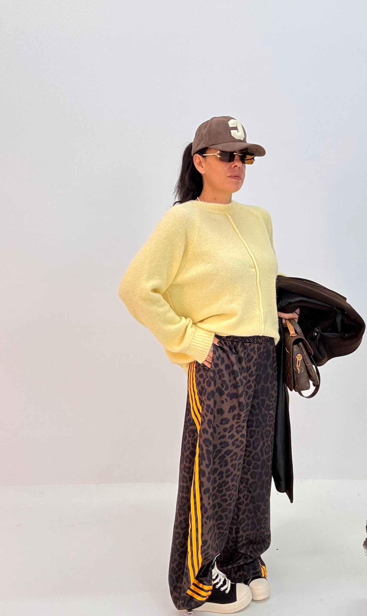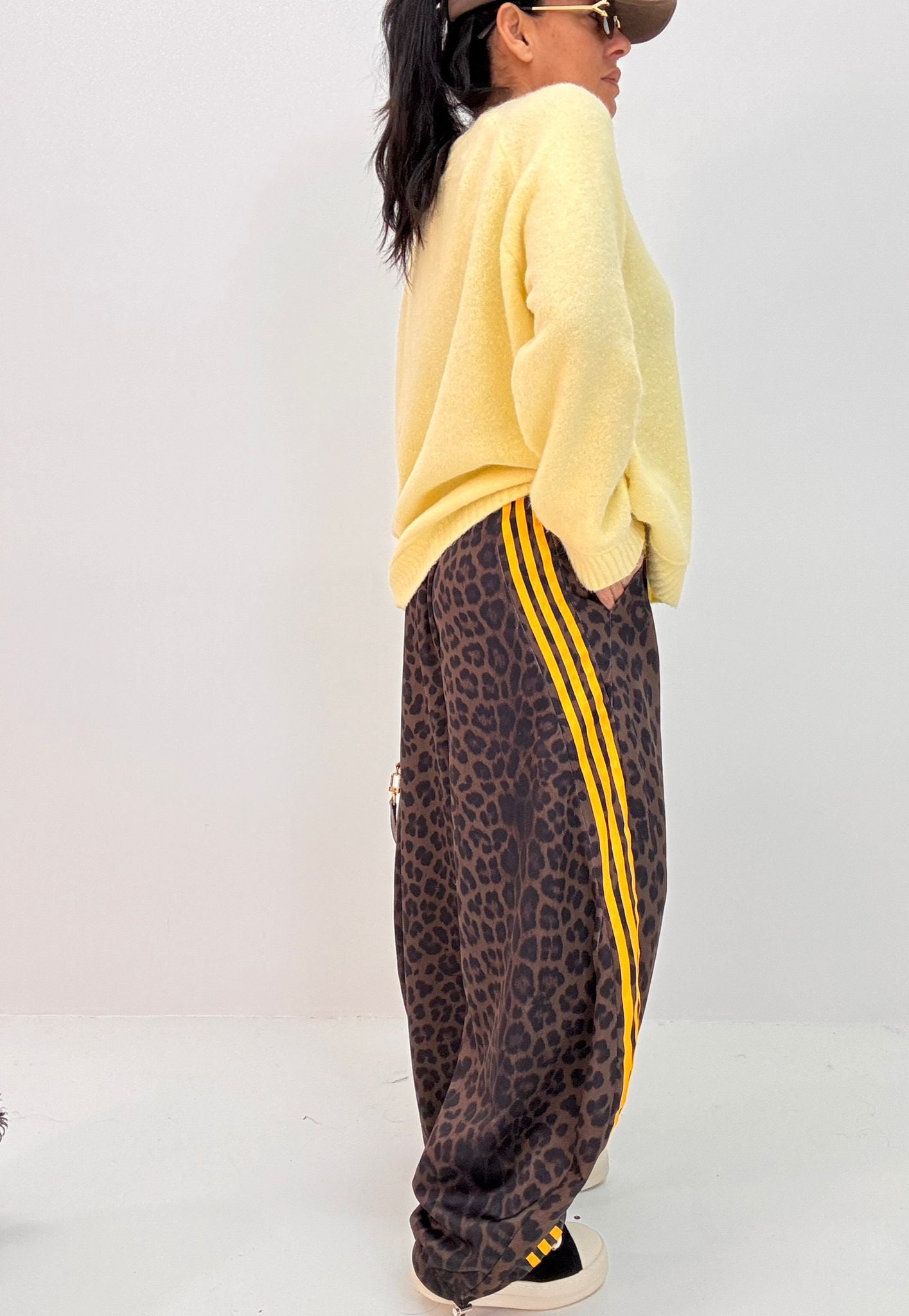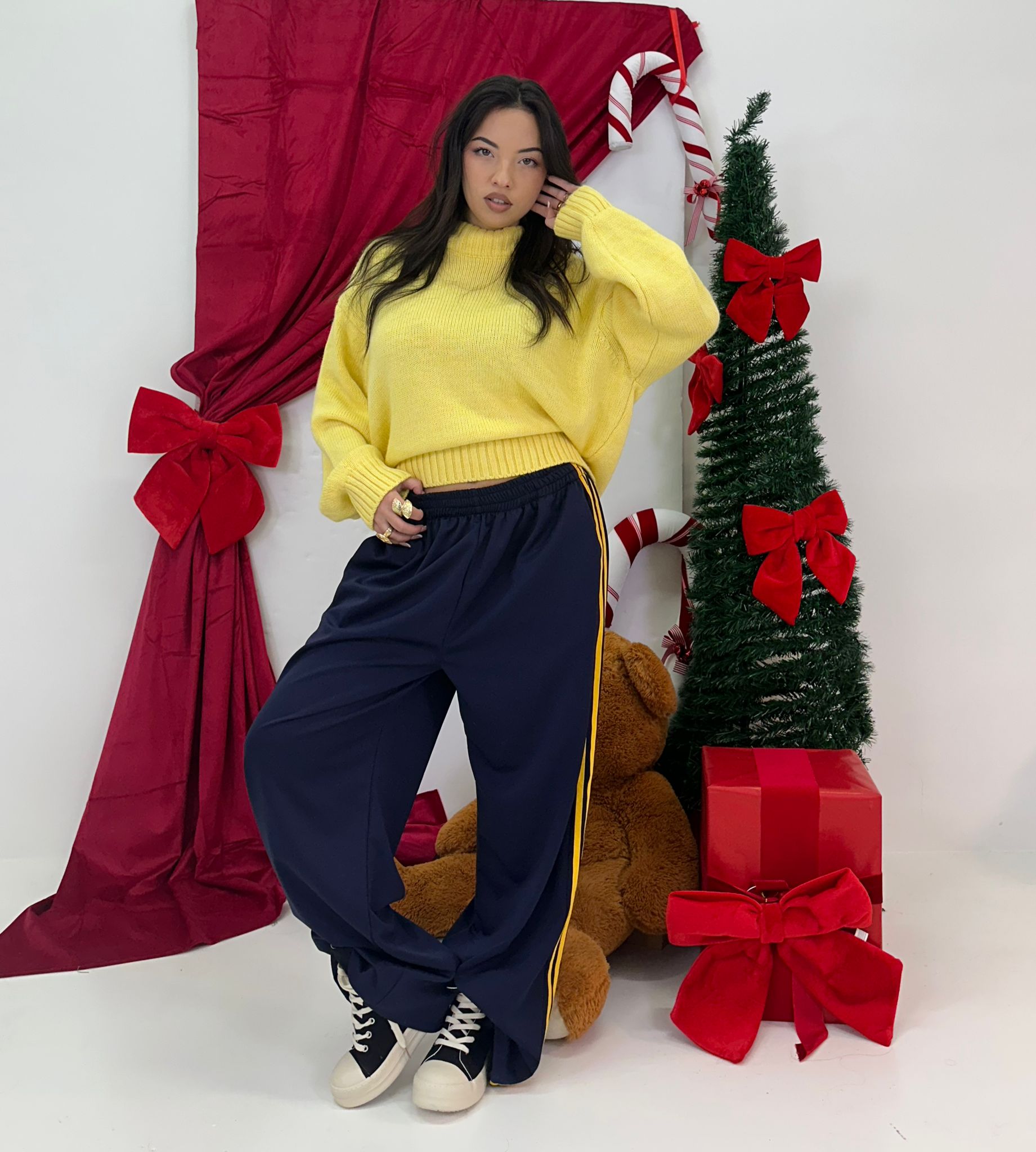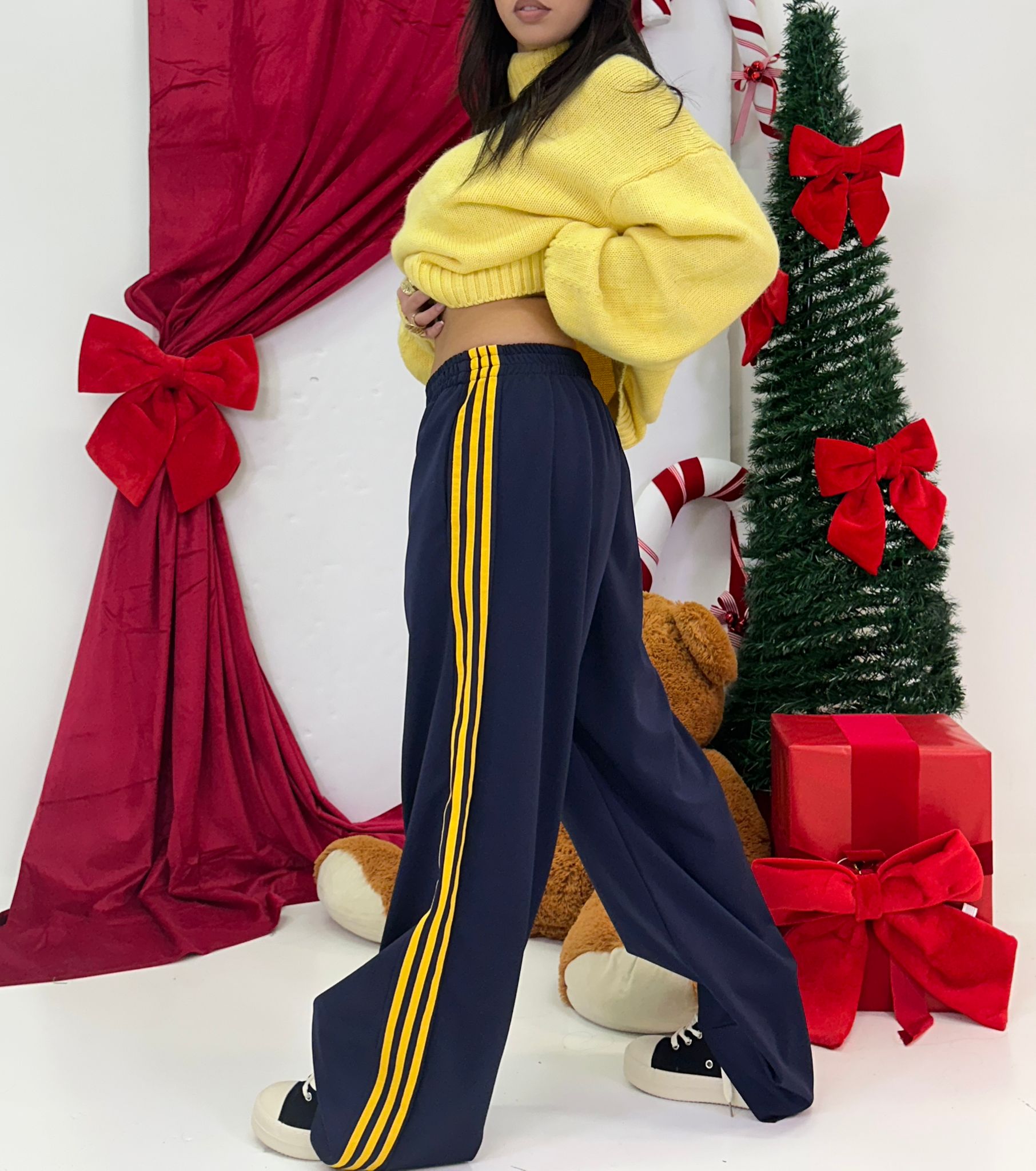 Enza è alta 1.65, solitamente indossa taglia S, il pantalone si presenta in taglia unica